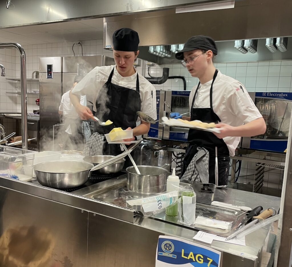 – På tävlingsdagen var det definitivt stress. Tid och precision. Vi fick en del misstag, fiskbullarna sprack, hollandaisesåsen blev för lös, och vi glömde lägga på den vackra tuillen i slutet. Var vi nöjda? Nej, men vi gjorde det vi kunde i läget, säger Erik.